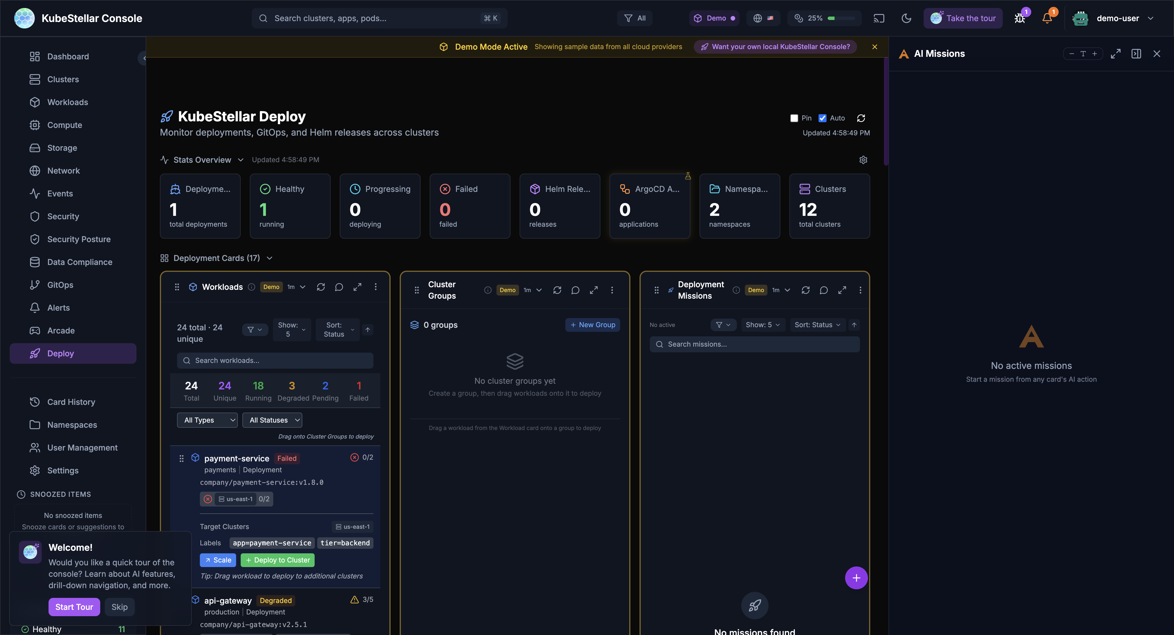 KubeStellar Console isn’t just for monitoring — it’s a full deployment and orchestration control plane for your workloads across multiple clusters.